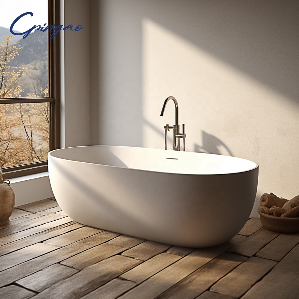 180cm Grande Forma Oval Elenco Artificial Mármore Pedra Resina Banheira, luxo Banheiro Chuveiro Livre De Pé Superfície Sólida Banheira